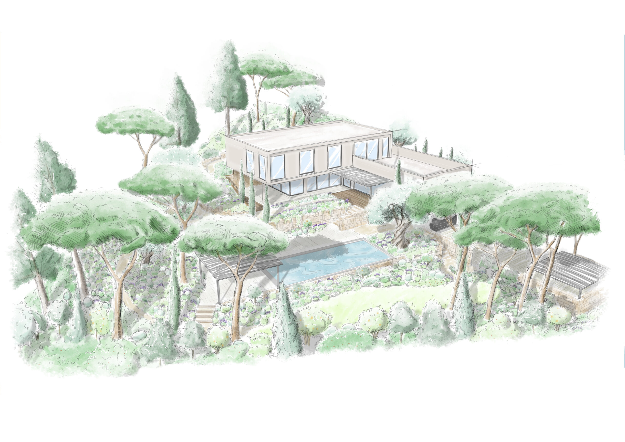 Esquisses, plans techniques ou vues immersives sont réalisés avec soin, pour offrir une vision claire et vivante de votre futur espace paysager